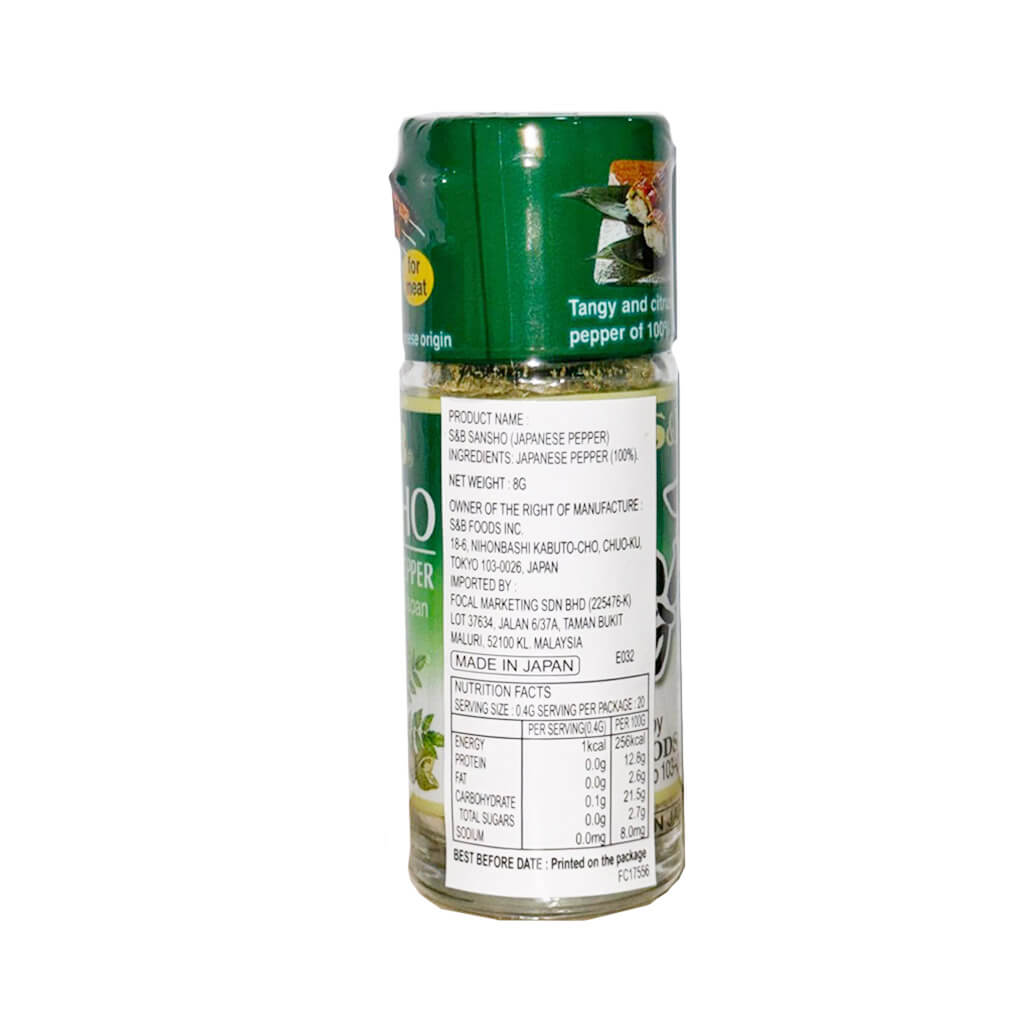 S&B Kona Sansho 8G WhatsApp to Order Enquiry Now S&B Kona Sansho Product: Japanese Ground Pepper Origin: Product of Japan Manufacturer: S&B Foods Inc Net Weight: 8g